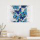 Vertical composition of réalistes, blue and white morpho butterflies on gray textured background. Morphine bleu.