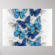 Vertical composition of réalistes, blue and white morpho butterflies on gray textured background. Morphine bleu.