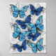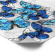 Vertical composition of réalistes, blue and white morpho butterflies on gray textured background. Morphine bleu.