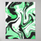 Ce design présente une motif en marbre abstrait aux couleurs vert, noir et blanc. Les formes tourbillonnantes et fluides créent un sens du mouvement et de la profondeur, mélangeant les couleurs de manière fluide et dynamique. Les tons verts apportent un contraste rafraîchissant à l'audacieux noir et blanc immaculé, le rendant visuellement attrayant et moderne.