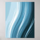 Une oeuvre d'art abstraite apaisante inspirée du mouvement des vagues de l'océan. Le design présente des lignes courbes et lisses dans des tons bleus en couches, allant du bleu ciel clair à la marine profonde, accentuées de tons blancs qui ressemblent à des lueurs de lumière sur l'eau. La composition fluide capte à la fois la tranquillité et le mouvement, ce qui en fait l'endroit idéal pour les décors modernes, les arrière - plans ou les marchandises d'inspiration océanique.