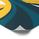 Un design abstrait moderne avec des courbes audacieuses et profondes dans les tons jaune moutarde, turquoise foncé, blanc et foncé. La composition crée un sens dynamique du mouvement, avec des courbes convergentes et divergentes dans un mouvement fluide, comme une onde. Des zones de motifs mi-teintes pointillés dans des couleurs assorties ajoutent profondeur, texture et une atmosphère pop-art rétro. L'interaction entre les couleurs solides et les dégradés en pointillés améliore le rythme visuel global et l'énergie de l'oeuvre d'art.