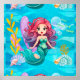 Design de sirène mystique Plongez dans un monde enchanteur avec notre design de sirène mystique! Cette superbe oeuvre d'art présente une sirène captivante aux cheveux roses et violets fluides et vibrants, qui chante comme la lumière du soleil sur les vagues de l'océan. Ses traits délicats sont encadrés par des accessoires de coquillages complexes, tandis que sa queue irisée brille de teintes de bleu, lavande et argent. Elle est entourée de tourbillons de flore sous-marine et de bulles qui semblent danser dans les courants marins.