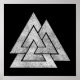 La valise, la vallée de l'Ancien Norse, les "guerriers tués" et le noeud, a trois triangles enfermés. Ce symbole viking a été illustré en blanc, avec un regard affligé sur un arrière - plan noir. Cela faisait partie de la mythologie norse et était utilisé par les Vikings et les guerriers normands.