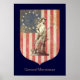 Dessin vintage de Concord Minuteman avec 13 colonies (Betsy Ross) premier drapeau américain en forme de bouclier de l'arrière - plan. Usagé. Vous pouvez ajouter votre message