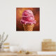 Affiche Cône de crème glacée fraise - Art de style peintre