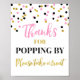 Merci pour le popping par pop-corn bar signe pour baby shower, douche nuptiale, fête d'anniversaire ou mariage dans un motif de confettis rose, noir et or.
