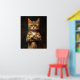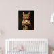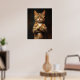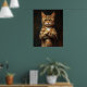 A characterful digital portrait of a tabby cat standing upright with its front paws crossed, wearing a proud, slightly sassy expression. The dark, abstract background with textured brushstrokes in brown, orange, and black highlights the cat’s confident posture and playful attitude. This piece balances artistic moodiness with humor, perfect for a home office, studio, or as a quirky gift for cat lovers. Ideal for posters, canvas prints, stickers, and apparel to add personality and charm to any space.