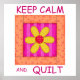 Montrez votre amour de la courtepointe avec ce bloc de courtepointe amusant et coloré qui proclame "Conserver le calme et la courtepointe". Ce design est original de l'art de la courtepointe avec un bloc de patchwork de fleurs appliqué coloré. Le mot "courtepointe" est facile à changer pour un autre mot de votre choix. Le design des courtepointes est dans des couleurs vives et dynamiques d'orange, de jaune et de rose pour une belle palette de couleurs. Entièrement personnalisable pour personnaliser. L'art de la courtepointe est l'art original de Phyllis Dobbs, concepteur de tissus et de courtepointes. Cet art est disponible sur d'autres produits et dans plusieurs arrière - plans de couleur et est également disponible sur plus Garder Calm produits avec différentes surfaces composées. Plus de produits sont disponibles dans Phyllis' BusinessWithFlair store.
