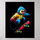 Affiche Cool Funky Capuchin Monkey Skateboarding Illustrat