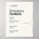 Affiche Coordonnées d'urgence auberge bed & breakfast info