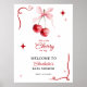 Bienvenue aux invités dans le style avec ce panneau de baby shower de cerise d'inspiration coquette, avec deux cerises à l'aquarelle peintes à la main et attachées à un délicat arc rose. Les étoiles rouges rétro et les accents tourbillonnant ajoutent une touche vintage ludique, tandis que la typographie audacieuse le garde chic et facile à lire de loin. Correspond parfaitement à l'invitation cerise et carte de remerciements pour un look coordonné. Disponible dans un grand format idéal pour l'affichage sur un chevalet ou le cadrage à l'entrée de la fête. Une façon douce d'accueillir les invités et de cravate votre célébration à thème de cerise ensemble.