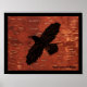 Une silhouette noire simple d'un Corbeau (Corvus corax) sur une image arrière - plan du côté rouge inverse (à l'intérieur) de l'écorce de bouleau. L'image du corbeau a reçu un léger effet "rugueux" ou "usé". Ajoutez votre propre texte.