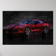 Aimer les corvettes ? Découvrez ce magnifique art de la corvette avec une Corvette rouge Z06 à rayures noires. Corvette photographie numériquement peinte pour ressembler à de la peinture goutte à goutte. Arrière - plan gris foncé avec lettrage Corvette Z06.