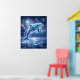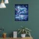 A joyful cosmic dolphin leaps through a radiant star tide, its sleek body formed from luminous nebula gradients and shimmering stardust. Trails of glowing particles follow its motion, capturing energy, freedom, and playfulness. The reflective cosmic ocean and vibrant sky enhance the sense of movement and life. This uplifting artwork symbolizes happiness and fluid motion, making it perfect for modern interiors, ocean lovers, and dynamic wall decor that brings light and positivity into any space.