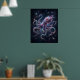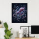 A mesmerizing cosmic octopus drifts through a deep interstellar abyss, its fluid body formed from swirling nebula clouds and glowing galactic textures. Long, elegant tentacles extend outward, lined with luminous patterns and trailing stardust particles. The surrounding cosmic trench fades into darkness, filled with subtle light and mysterious depth. This artwork captures intelligence, movement, and otherworldly beauty, making it perfect for modern interiors, sci-fi decor, and collectors of bold, immersive cosmic designs.