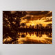 Un coucher de soleil chaud, vif et doré se reflète dans les vagues du lac paisible et fluide.