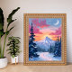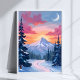 Coucher de soleil au sommet enneigé | Affiche de peinture de paysage hivernal