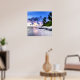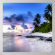 Affiche Coucher de soleil avec palmiers et plage rocheuse