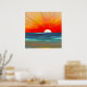 Poster dans un coucher de soleil semi-abstrait sur l'océan, aux couleurs psychédéliques de rouge et d'orange vif, avec un océan bleu profond