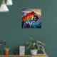 Affiche Coucher de soleil de Tigre Silhouette Montagne