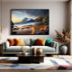 Plongez-vous dans la tranquillité de ce paysage épique. Avec des montagnes majestueuses enneigées rencontrant les vagues dorées d'une plage de sable, cette œuvre d'art capture l'harmonie parfaite de la nature. Idéal pour la décoration murale pour apporter sérénité et aventure à votre maison.