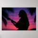 Baigné dans les teintes électriques de violet profond et de rouge vif, couleurs qui font écho au coeur d'un bourgeon de sinsemille, un Rastafarien solitaire se dresse en silhouette, sa guitare bercée comme une vérité sacrée. Le ciel brûle derrière lui, une toile psychédélique de rythme et de révérence. Ce n’est pas seulement un coucher de soleil, c’est un hommage aux racines, à l’herbe et à l’âme du reggae.