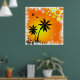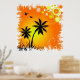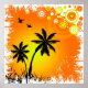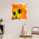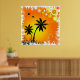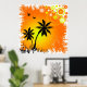 Illustration de coucher de soleil tropical avec décoration de palmier dans un cadre de grunge blanc