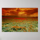Affiche Coucher du soleil du désert sur un champ de pavots