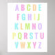 Features the alphabet in a pastel rainbow color scheme. Matches other items in our Playroom Collection. Other color schemes also available.