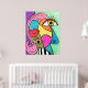 Cette affiche lumineuse et colorée a été créée avec mon art abstrait pastel à la craie avec un design cubiste avec de grands yeux et des lèvres rouges dans un joyeux design de blocs de couleur rose, vert, bleu, jaune, violet avec une touche de rayures noir et blanc.