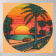 Affiche Couleur crayon d'un coucher de soleil rond de plag
