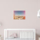 Cette affiche en couleur présente un mur monolithique de rochers dans le parc national Joshua Tree. L'avant-plan de ce désert de Californie est parsemé de buissons verts et d'agave, tous accentués par des fusées lumineuses saturées roses, créant une belle pièce d'art branchée pour toute maison ou dortoir moderne.