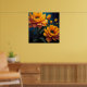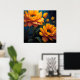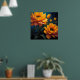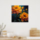 Affiche Couleur vive Fleurs orange jaune sur bleu 1:1