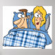 Un couple au lit sous un couvre-lit à carreaux. Ce design semble vraiment efficace sur ces Poster