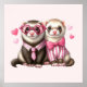 Une affiche avec une jolie illustration. Une paire de loutres en vêtements rose. Portant des chemises rayées, l'une portant une cravate et l'autre portant un arc. Entouré de coeurs d'amour.
