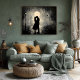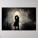 Une œuvre d'art romantique en noir et blanc représentant un couple s'étreignant sous le clair de lune dans une rue calme et pluvieuse. Cette scène minimaliste et cinématographique capture l'intimité, le silence et la connexion émotionnelle, ce qui la rend idéale pour des intérieurs élégants et une décoration murale romantique intemporelle.