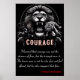 Unleashed Courage est représenté dans cette image en noir et blanc à contraste élevé. Un lion féroce rugit, une démonstration de puissance brute, tandis qu'un petit tigre grimpe joyeusement sur son dos. L'arrière - plan sombre met l'accent sur les sujets. "Courage" est écrit en caractères rouges gras et élégants dans une zone de texte stylisée ci-dessous. La citation de Nelson Mandela renforce le thème : "J'ai appris que le courage n'était pas l'absence de peur, mais le triomphe sur elle. L'homme courageux n'est pas celui qui ne se sent pas effrayé, mais celui qui conquiert cette peur." L'image inspire force et bravoure.
