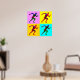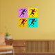 Des silhouettes multicolores de coureurs sur l'arrière - plan de carrés multicolores