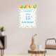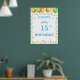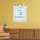 Belle couronne, ballons multicolores et confettis dorés et turquoise Affiche d'anniversaire. Le texte peut être personnalisé pour d'autres âges. La couronne peut également être personnalisée.