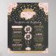 Ce design présente une couronne royale scintillante en or faux pailleté décorée de pivoines rose pastel à l'aquarelle douce et de confettis sur fond tableau noir.