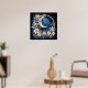 "Golden Lunar Wreath" est un design d'affiche époustouflant qui allie beauté céleste et élégance botanique. Une lune de croissant doré, magnifiquement détaillée, brille brillamment contre un ciel étoilé, bleu profond. La lune est entourée d'un arrangement luxuriant de fleurs et de feuilles blancs et bleus, créant un sentiment de sérénité et de grâce magique.