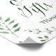 Cette couronne rustique avec carte de signe de cadeaux et de feuilles vertes est parfaite pour un mariage en plein air ou une douche de mariée. Le design présente un beau et fantaisiste cadre de feuilles d'aquarelle, de plantes et de verdure. La ligne de texte au bas du panneau peut être personnalisée avec la date, les noms des mariés, ou un court message comme "Merci".