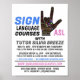 Affiche Cours de langue des signes publicitaire en américa