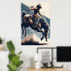 Un cow-boy monte un cheval dans une arène de rodéo, levant la poussière alors qu'il lutte pour rester dans la selle.