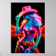 Affiche Cowgirl chic et dynamique avec éclairage néon rétr