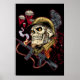 Affiche Crâne avec casque, avions et bombes
