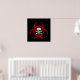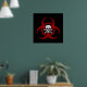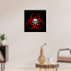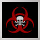 Poster crâne et os croisés avec symbole de risque biologique rouge.
