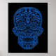 Affiche Crâne de sucre bleu complexe sur noir