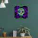 Affiche Crâne de sucre lumineux vert et violet Halloween